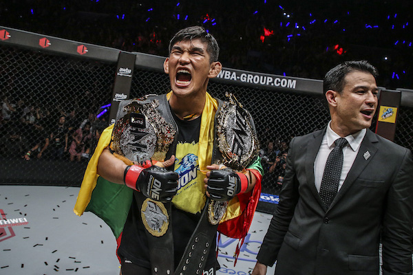 The largest global sports media property in Asian history, ONE Championship™ (ONE), had another memorable and historic evening in Yangon as the capacity crowd at the Thuwunna Indoor Stadium witnessed an amazing display of heart-pounding martial arts action. ONE: QUEST FOR GOLD featured a series of compelling bouts, punctuated by an unforgettable championship clash that left fans on the edge of their seats. In the main event, hometown hero “The Burmese Python” Aung La N Sang scored a quick knockout victory over Alexandre Machado to win the vacant ONE Light Heavyweight World Championship and the GoDaddy Knockout of the Night.