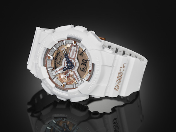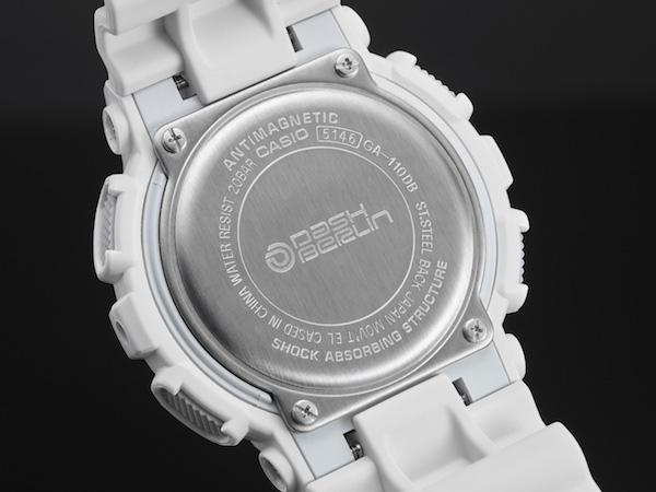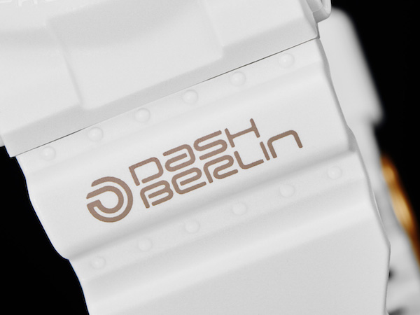 The exclusive Dash Berlin model is a GA-110 G-SHOCK Big Case series, staying true to the concept of absolute toughness and unbreakable durability. It is available in clean and sophisticated white combined with stylish rose gold. Personally designed by Dash, the colour white represents the blank canvas of life waiting to be written upon, stimulating creativity and action, while his choice for gold stands for luxury and quality. This attention grabbing watch spots the official Dash Berlin logo and has the rugged functionality and bulky design that sets the G-SHOCK brand apart.