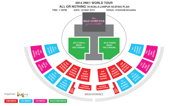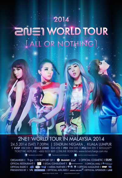 Tickets for 2NE1 2014 WORLD TOUR “ALL OR NOTHING” IN MALAYSIA are priced at: