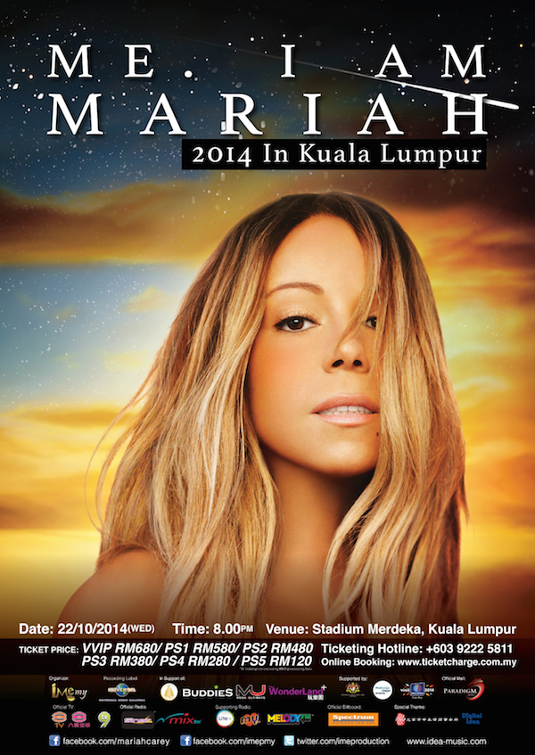 Tiket berharga RM120 untuk menyaksikan konsert Mariah Carey ‘The Elusive Chanteuse Show’ Tour In Malaysia 2014 habis dijual!