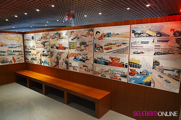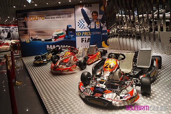 Terdapat hampir 30 pameran yang terdiri kereta F3,motosikal serta barangan peribadi pelumba. Kereta pelumba terkenal Brazil iaitu mendiang Ayrton Senna turut dipamerkan.Muzium ini juga mempamerkan barangan pelumba seperti Teddy Yip,Paul Du Toit, Arenio Laurel dan John Corsmit.Pada ulang tahun ke 50 Macau Grand Prix, pihak Macau Government Tourist Office telah pun membaiki serta manaik taraf muzium ini.